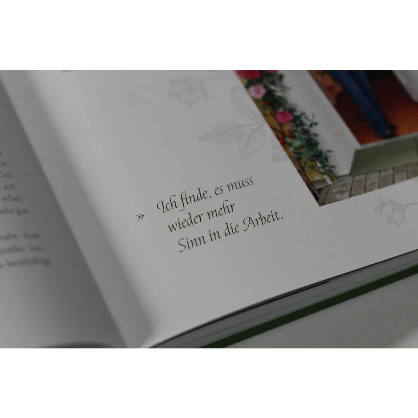 In dem Buch "Mit Herz und Hingabe arbeiten“ erzählt Daisy Gräfin von Arnim, die auch als Apfelgräfin bekannt ist, von ihren eigenen Erlebnissen und Erfahrungen, die Sie im Laufe ihres Lebens mit dem Thema Arbeit gemacht hat. Aber nicht nur das - sie beleuchtet auch viele interessante Aspekte zu diesem Thema. So ist ein wunderschönes Buch entstanden, das einerseits sehr gut recherchierte Berichte enthält, aber auch viele wertvolle Impulse weitergibt.