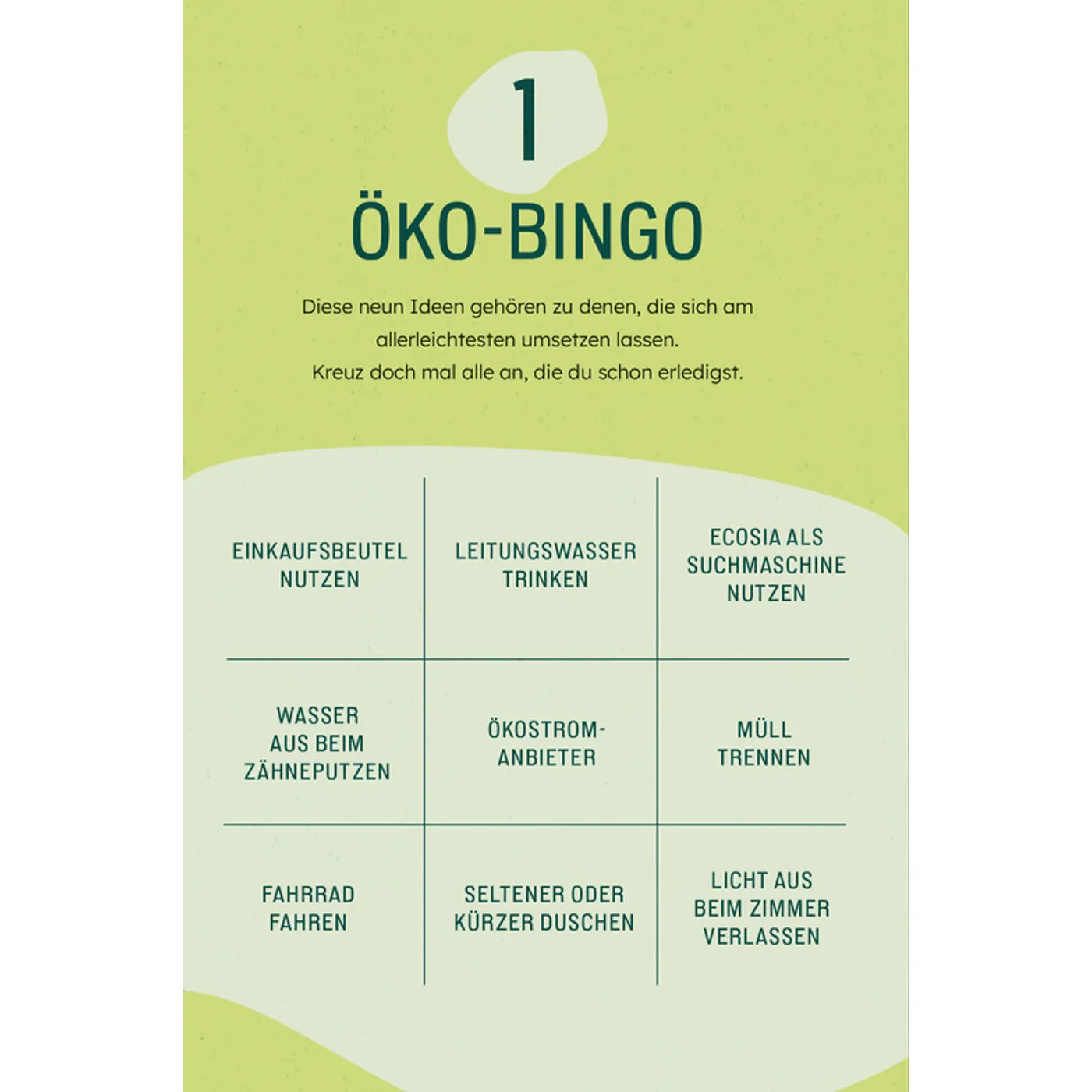 Das Buch von Anja Schäfer ist eine nette kleine Sammlung von Dingen, die jeder für sich oder mit mehreren tun kann, um die Umwelt zu schonen oder nachhaltiger zu leben. Wirklich bahnbrechend neue Tipps darf man allerdings nicht erwarten. Es ist vielmehr eine Zusammenstellung aus allen möglichen Themenbereichen und kommt daher manchmal etwas ungeordnet daher. Außen ist das Büchlein sehr ansprechend gestaltet, innen gefiel es mir nicht so ganz. Die Tipps sind auf mehrfarbigen Seiten (überwiegend in Naturtönen gehalten), durchnummeriert und aneinander gereiht. Trotzdem kann man sich Anregungen holen, wie man ganz einfach mithelfen kann, unsere Erde zu schonen.