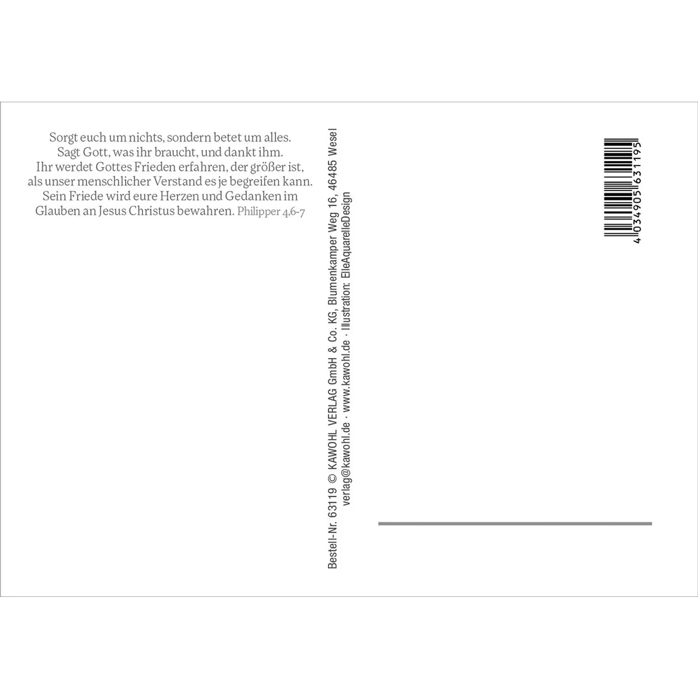 Text: Mach dir keine Sorgen. Bete stattdessen und danke Gott. Dann wird sein Frieden dich erfüllen.