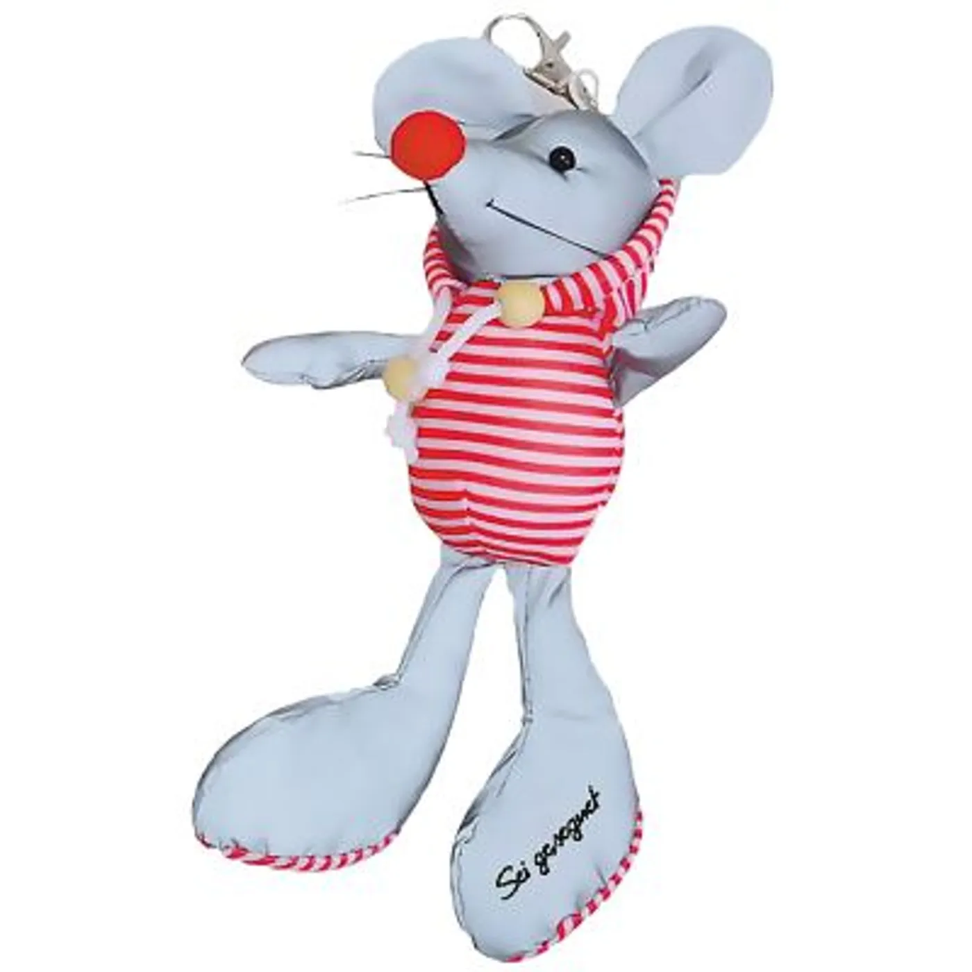 Der süße, kuschelige Begleiter sorgt für mehr Sicherheit im Straßenverkehr! Die lustige Maus ist teilweise aus reflektierendem Stoff geschneidert. Mit einem Karabiner versehen ist es perfekt als Schlüssel- oder Taschenanhänger für Groß und Klein! Mit Wunschtext Sei gesegnet auf einem Fuß.