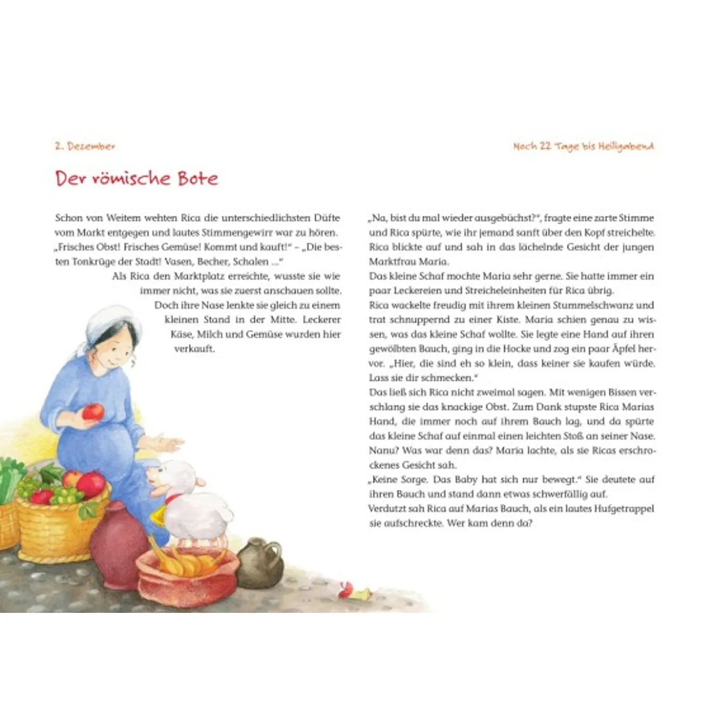 Das kleine neugierige Schaf Rica bekommt mit, dass Maria und Josef nach Bethlehem reisen müssen. Das ist ja so aufregend! Da möchte Rica unbedingt dabei sein. Gemeinsam mit ihrem besten Freund, dem Hirtenhund Mischa, macht sie sich auf den Weg. Unterwegs lernen sie nicht nur viele neue Freunde kennen und erleben so manches kleine Abenteuer, sondern sind auch Teil der wunderbaren Ereignisse der Heiligen Nacht.
