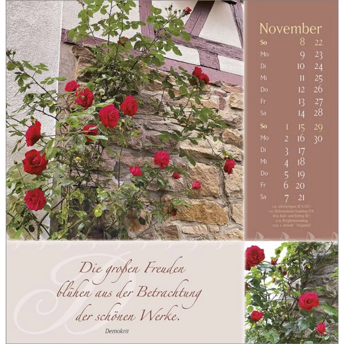 Wandkalender mit Rosenwünschen für ein ganzes Jahr