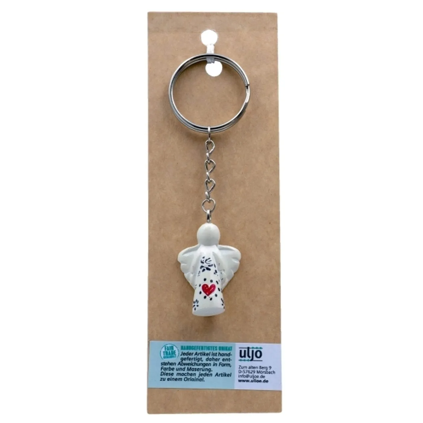 Höhe Engel: ca. 3,5 cm, Gesamtlänge Schlüsselanhänger: ca. 10 cm.