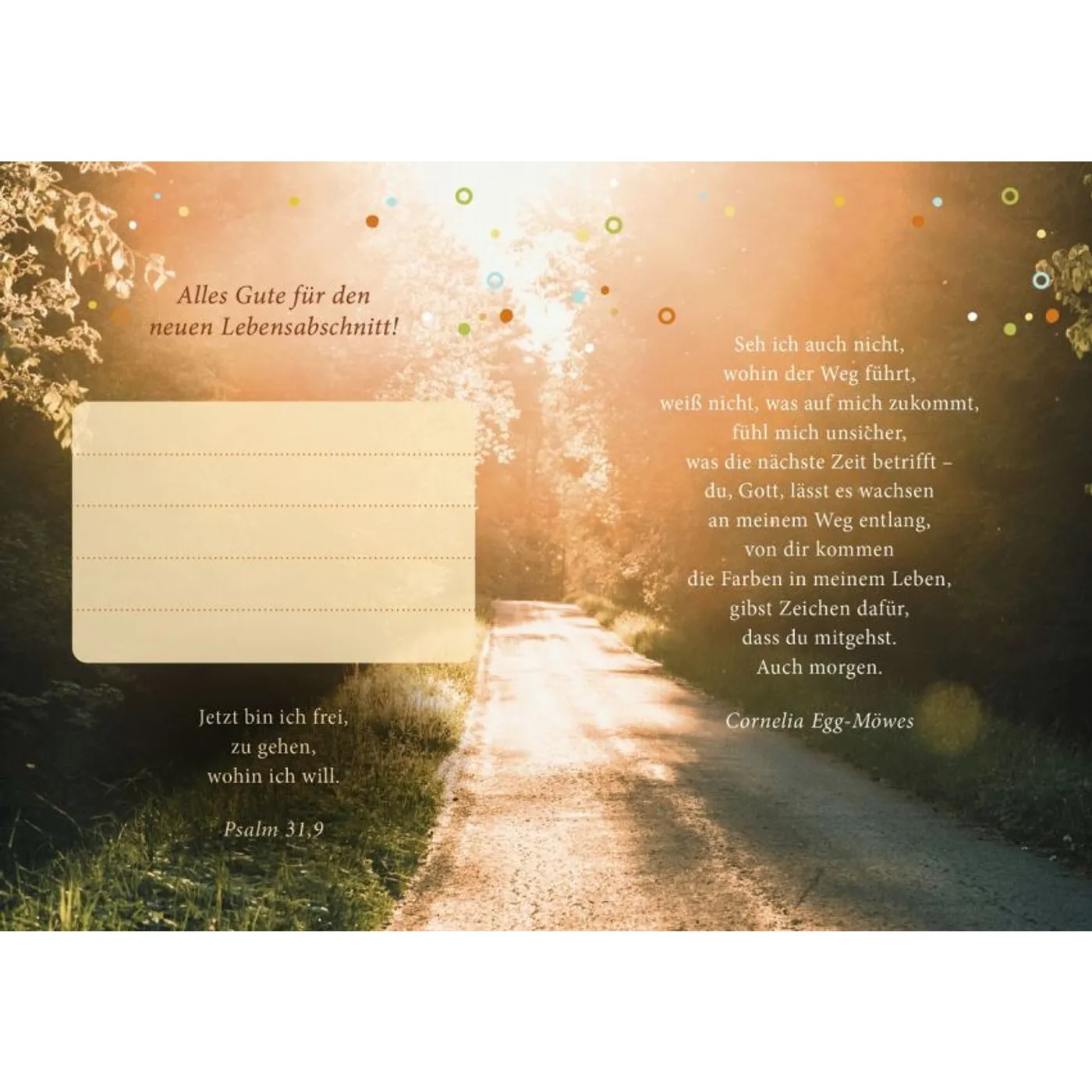 Ob im Umschlag verschickt oder persönlich überreicht: Die inspirierenden Texte und passend ausgewählten Bilder schenken viel Freude. Mit Gedichten, Bibelversen, Zitaten und Gedanken sowie Platz zum Eintragen eigener Grüße und Wünsche. Tipp: Die Segenspost passt wie eine Grußkarte in einen normalen C6-Umschlag (Porto: Kompaktbrief).
