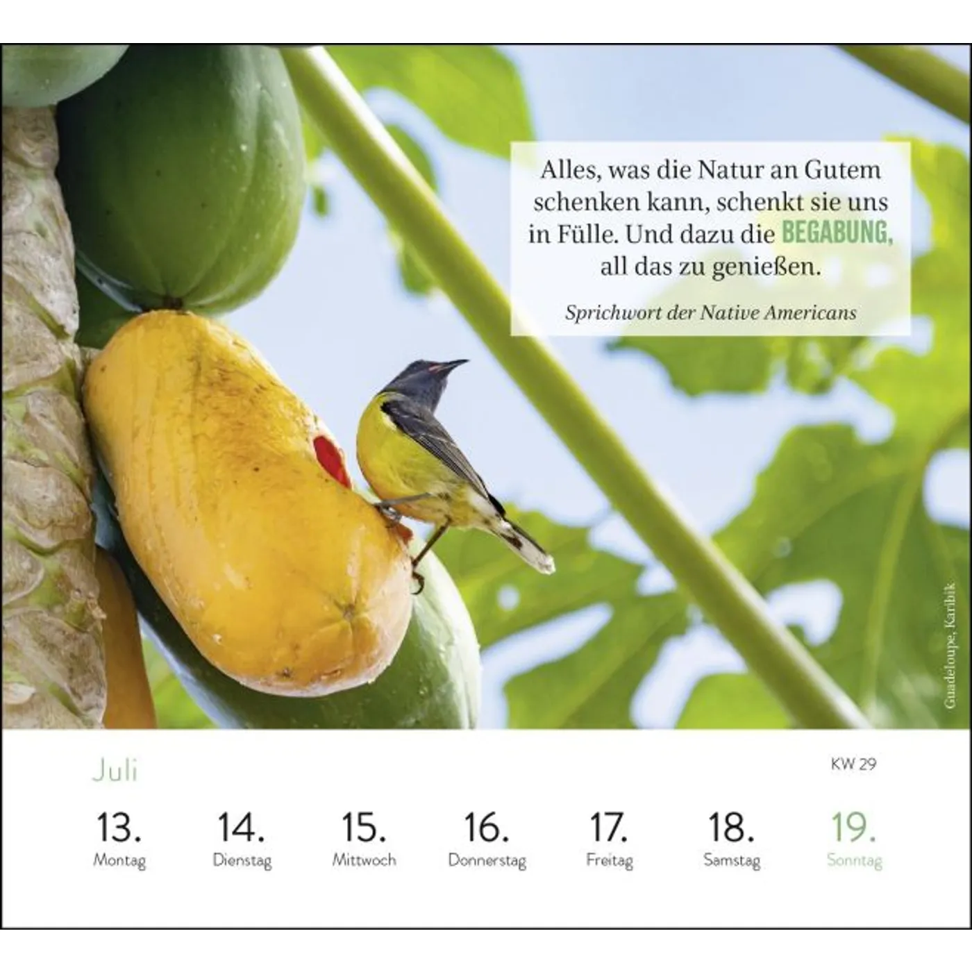 Der Sehnsuchtskalender für 2026 bringt die ganze Welt nach Hause: Auf 53 atemberaubenden Landschaftsfotos entführt der Tischkalender Sehnsuchtsorte 2026 mit Wochenkalendarium an die schönsten Sehnsuchtsorte der Welt. Auf den Rückseiten der Kalenderblätter finden sich jeweils zusätzliche Informationen und Anregungen zu den Destinationen. Der Jahreskalender eignet sich auch wunderbar als Deko oder als kleines Geschenk für Kollegen/Kolleginnen und alle, die von Reiselust und Fernweh geplagt werden oder einfach nur vom nächsten Urlaub träumen wollen.