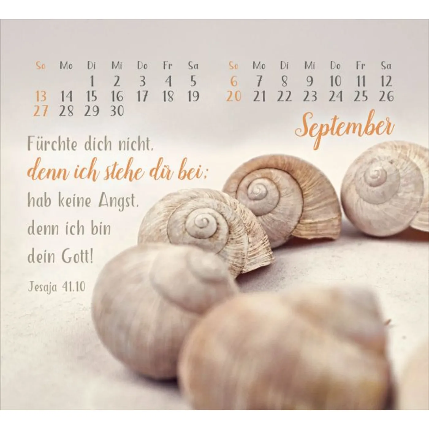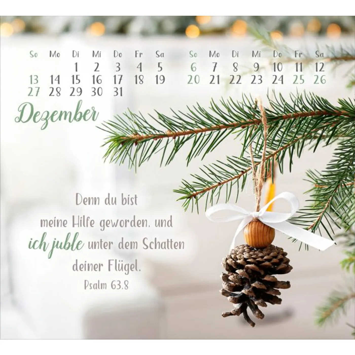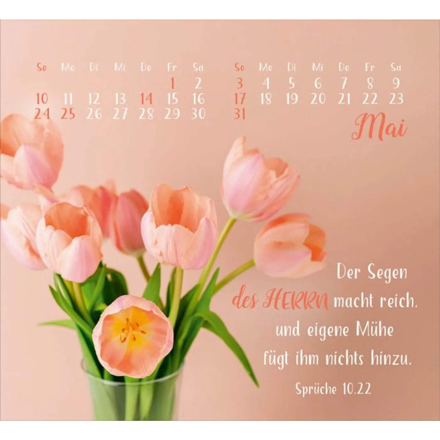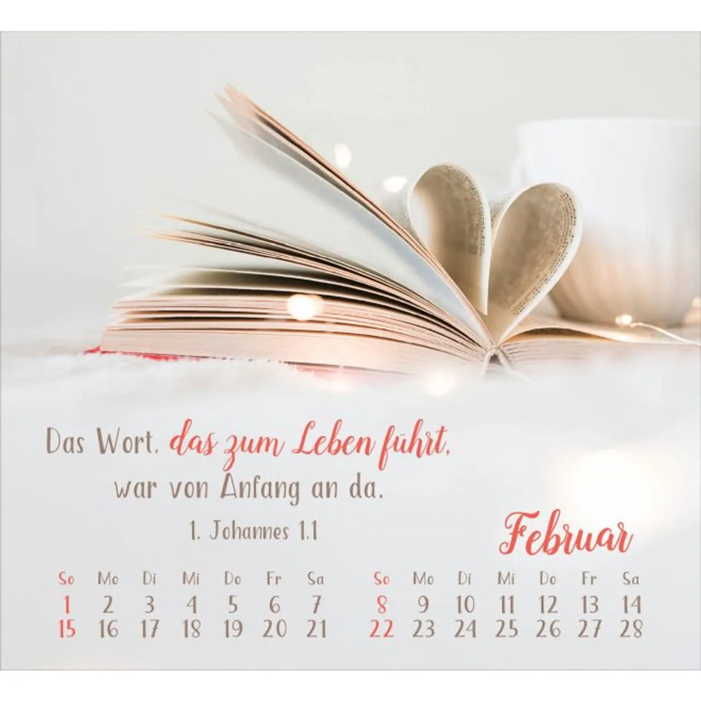 Entdecke den Tischkalender "Sei gesegnet!" für 2026, der mit seinen auserlesenen und ruhigen Motiven ein stilvoller Hingucker in Deinem Zuhause ist. Jedes Bild spricht eine eigene Sprache und schafft eine harmonische Atmosphäre, die zum Innehalten und Reflektieren einlädt. Ergänzt werden diese wunderschönen Motive durch sorgfältig ausgewählte Bibelverse und christliche Texte, die den Segen Gottes über Dein Leben aussprechen.
