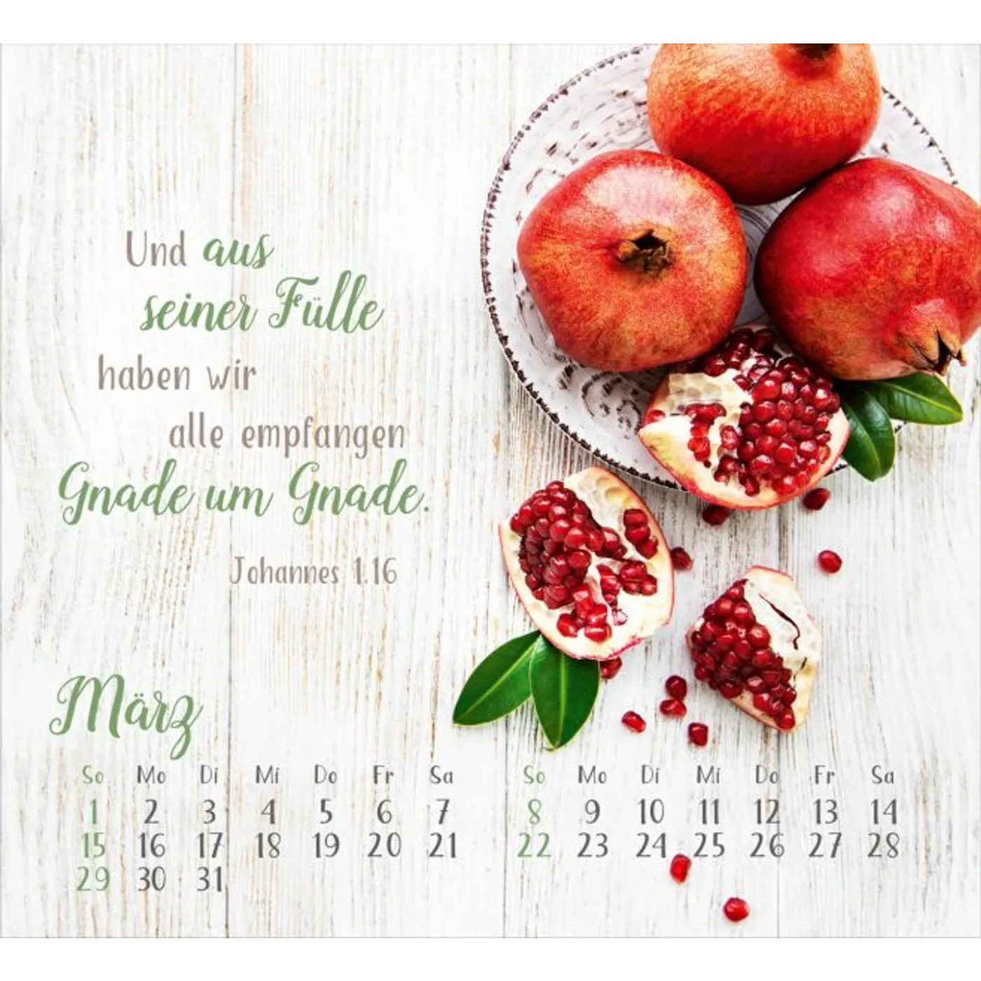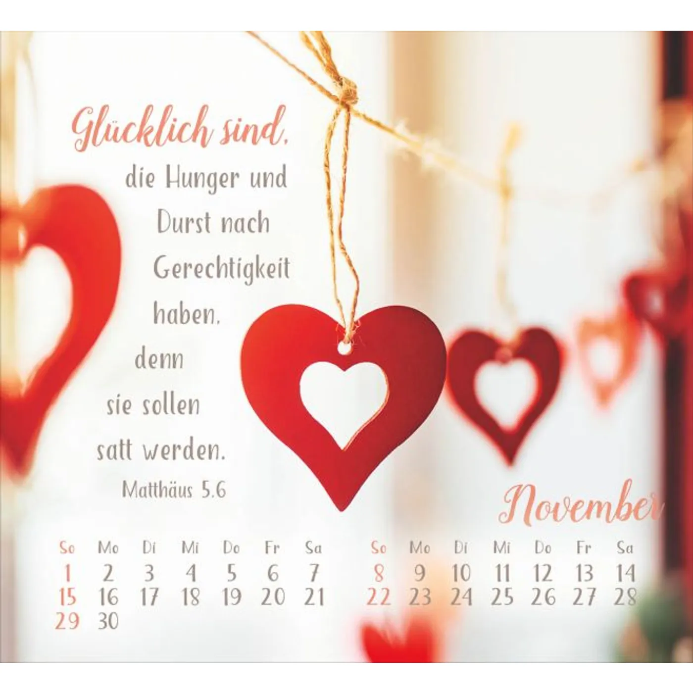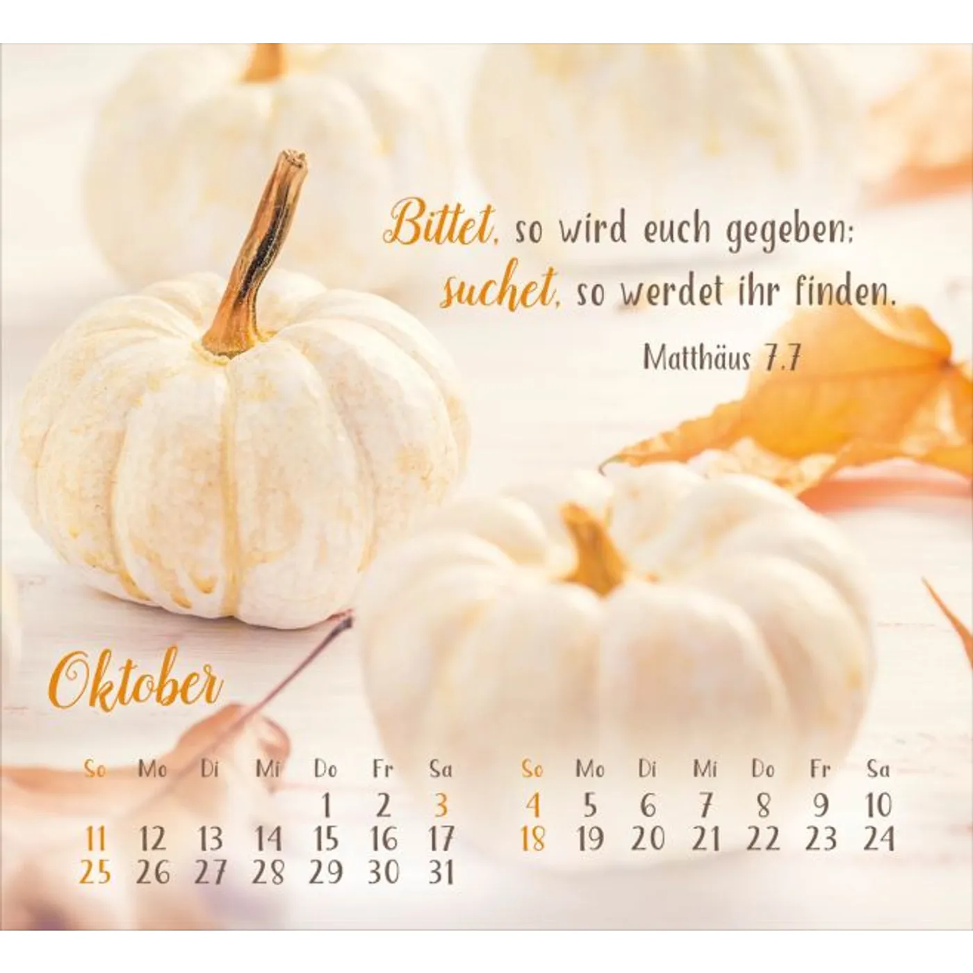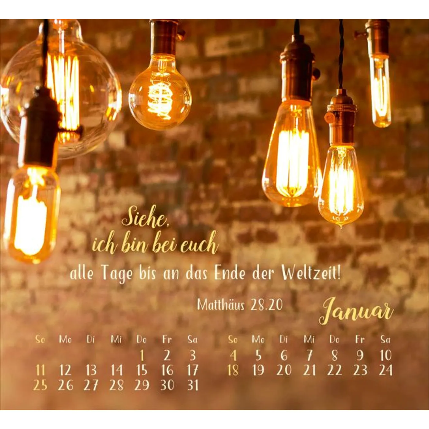 Entdecke den Tischkalender "Sei gesegnet!" für 2026, der mit seinen auserlesenen und ruhigen Motiven ein stilvoller Hingucker in Deinem Zuhause ist. Jedes Bild spricht eine eigene Sprache und schafft eine harmonische Atmosphäre, die zum Innehalten und Reflektieren einlädt. Ergänzt werden diese wunderschönen Motive durch sorgfältig ausgewählte Bibelverse und christliche Texte, die den Segen Gottes über Dein Leben aussprechen.