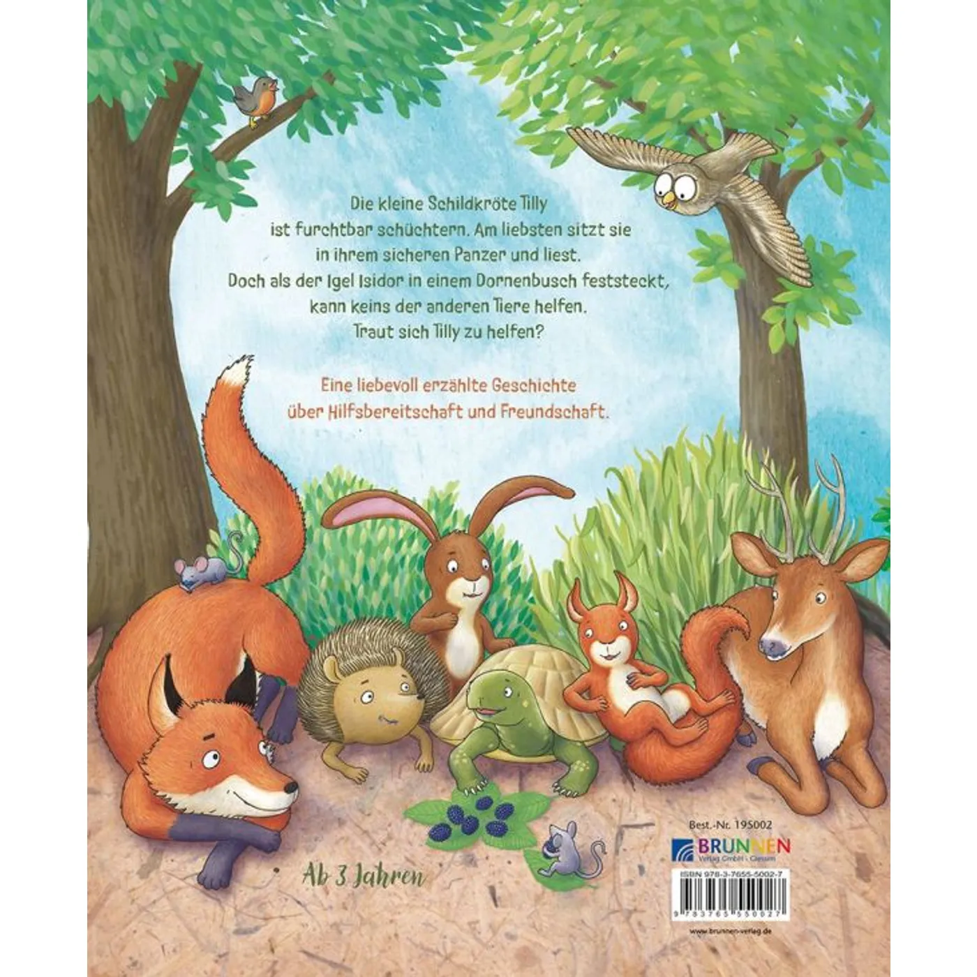 Tilly, die kleine Landschildkröte ist schüchtern und versteckt sich gerne hinter Büchern. Eines Tages bemerkt sie, das der Igel im Dornenbusch fest sitzt. Keiner der Waldtiere traut sich ihm zu helfen. Hat Tilly den Mut dem kleinen Igel zu helfen?