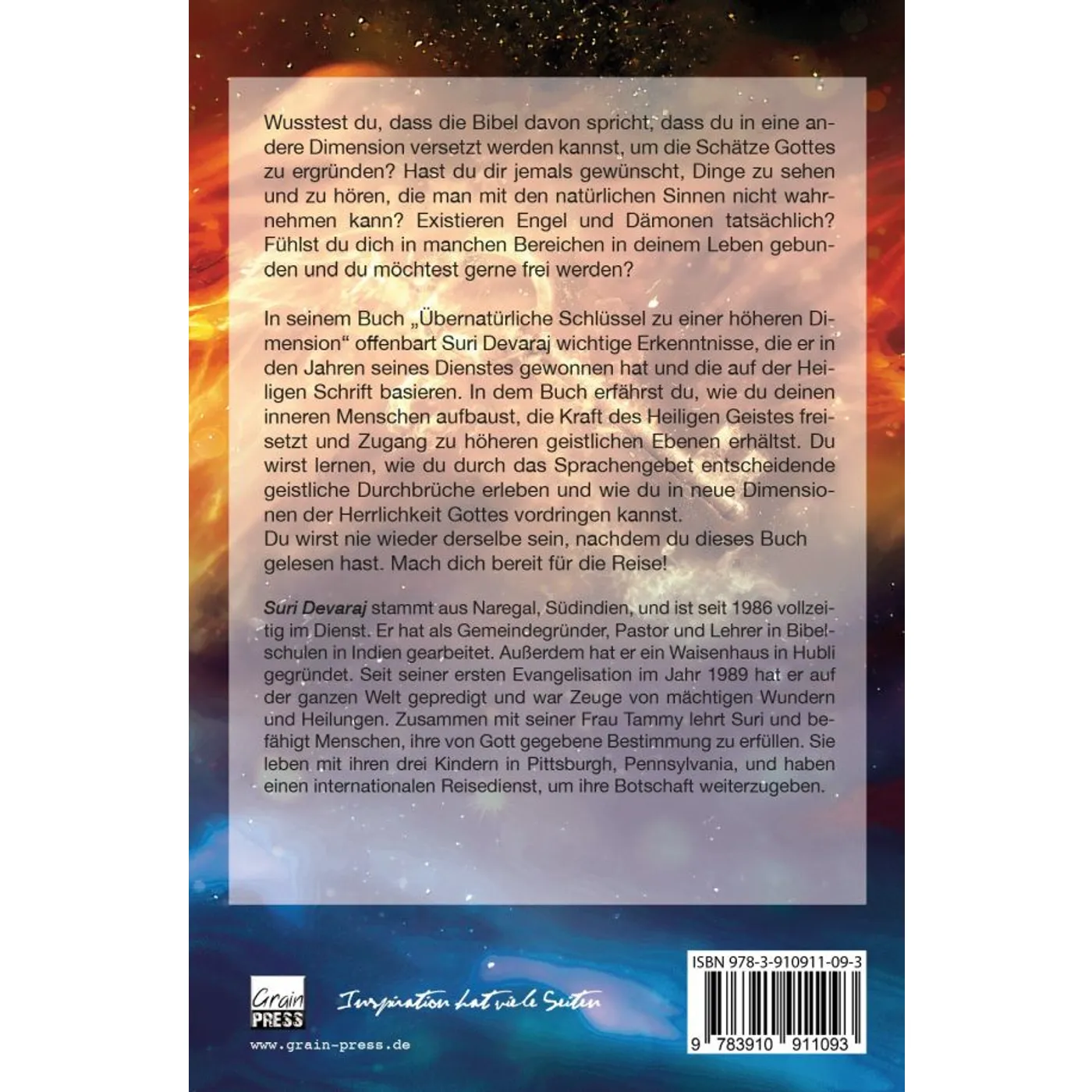 In seinem Buch „Übernatürliche Schlüssel zu einer höheren Dimension“ offenbart Suri Devaraj wichtige Erkenntnisse, die er in den Jahren seines Dienstes gewonnen hat und die auf der Heiligen Schrift basieren. In dem Buch erfährst du, wie du deinen inneren Menschen aufbaust, die Kraft des Heiligen Geistes freisetzt und Zugang zu höheren geistlichen Ebenen erhältst. Du wirst lernen, wie du durch das Sprachengebet entscheidende geistliche Durchbrüche erleben und wie du in neue Dimensionen der Herrlichkeit Gottes vordringen kannst.