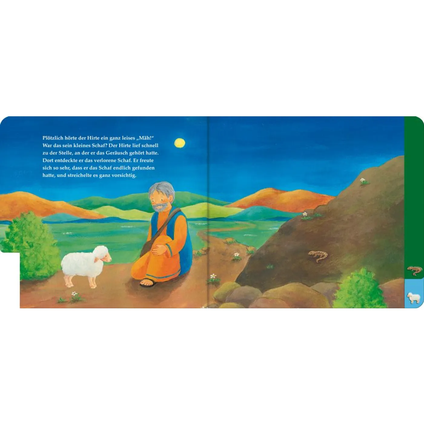 Farbenfrohe Bilder und kurze Texte erzählen das Gleichnis vom verlorenen Schaf und zeigen schon den Kleinsten, wie sehr Gott jeden Einzelnen von uns liebt.