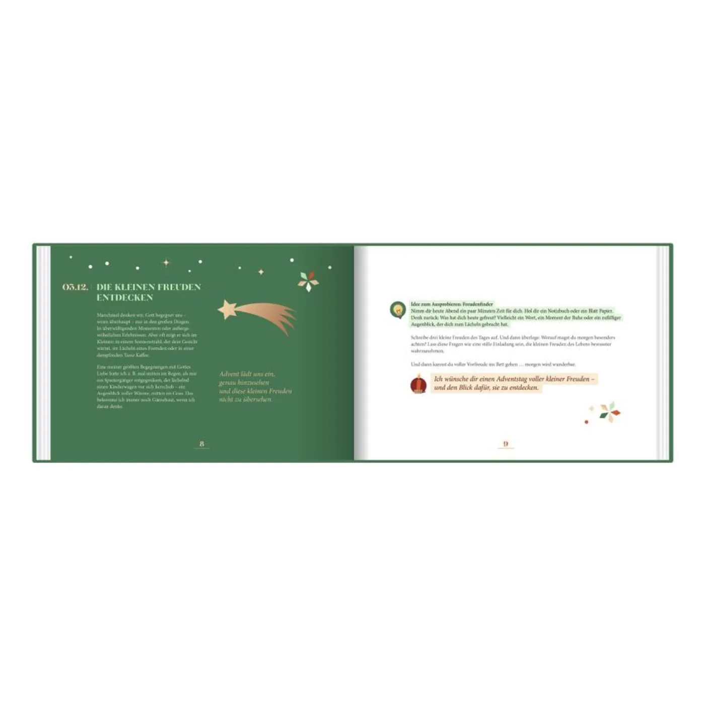 Daher endet dieses Adventskalenderbuch nicht an Heiligabend, sondern begleitet auch noch über die Feiertage und den Jahreswechsel. Es lädt ein, die besondere Zeit zwischen dem 1. Dezember und dem Dreikönigstag bewusst zu erleben - nicht als To-do, sondern als Geschenk. Es zeigt, wie man auch in kleinen Momenten Großes entdeckt. Denn genau dafür sind Advent und Weihnachten da: um das Herz zu öffnen für das Licht, das kommt und bleibt.