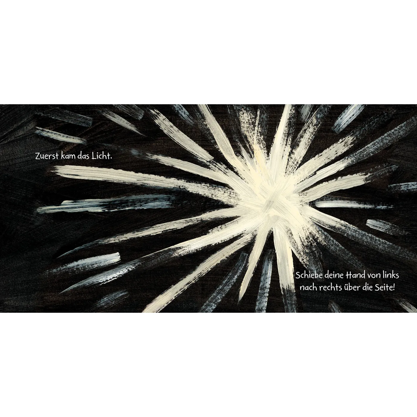 In erster Linie sind Kinder von 3 bis 5 Jahren die Zielgruppe dieses Mitmachbuchs. Interaktiv können diese die Schöpfungsgeschichte nicht nur kennenlernen, sondern auch mitgestalten. Dies funktioniert durch pusten, klatschen, über die Seiten streichen oder auf das Tippen von bspw. Bergen oder Wasserblasen. Die sieben Tage der Schöpfungsgeschichte werden nach und nach auf spielerische Art und Weise erkundet.