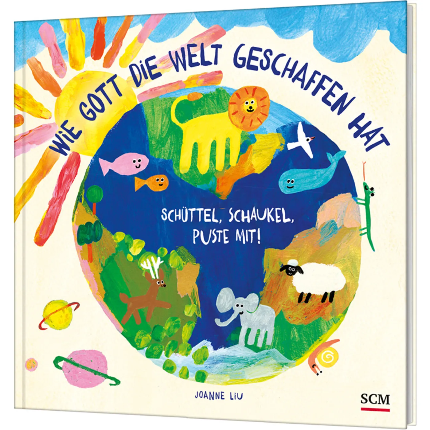 Hinter dem Buchtitel "Wie Gott die Welt geschaffen hat - Schüttel, schaukel, puste mit!" verbirgt sich ein interaktives Mitmachbuch zur biblischen Schöpfungsgeschichte. Es es das Werk von Autorin und Illustratorin Joanne Liu und als großformatiges Hardcoverbuch seit Dezember 2023 im SCM-Verlag erhältlich.
