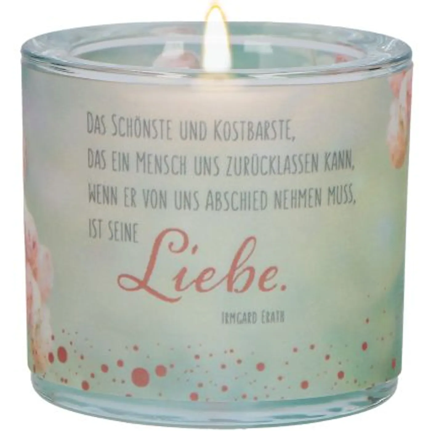 Text auf dem Produkt: Das Schönste und Kostbarste, das ein Mensch uns zurücklassen kann, wenn er von uns Abschied nehmen muss, ist seine Liebe. (Irmgard Erath)